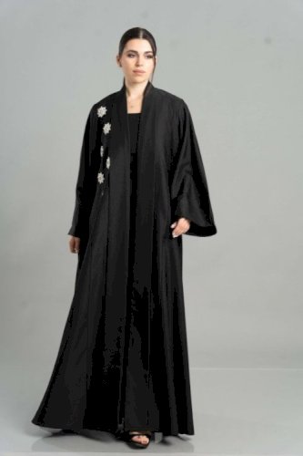 Formal blazer in light gray with navy blue stripes and full interior lining